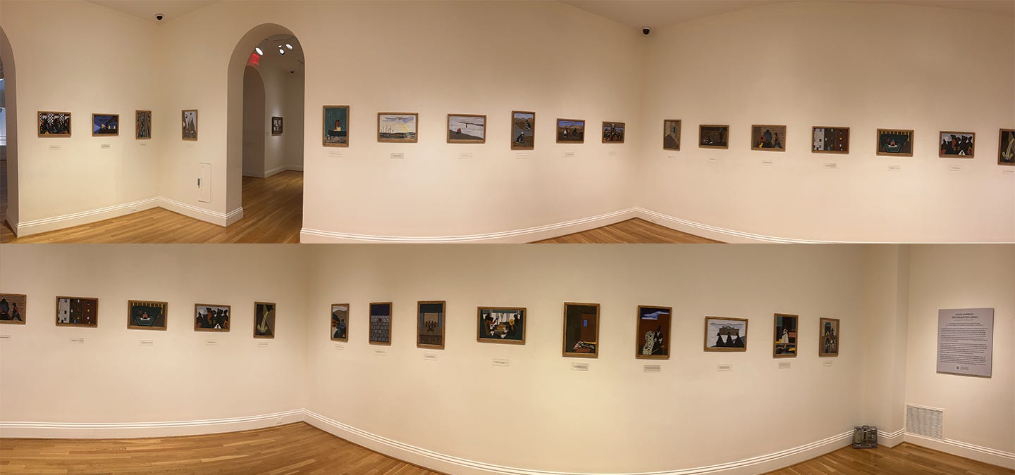 The paintings were shown publicly in a gallery exhibit, which brought him national recognition. This was a broad and complex subject to tackle in paint, one never before attempted in the visual arts. They were also controversial. Selections from this series were featured in a 1941 issue of Fortune magazine. In 1942 the entire series was purchased jointly and divided by the Phillips Collection in Washington, D.C., which holds the odd-numbered paintings, and New York's Museum of Modern Art, which holds the even-numbered.