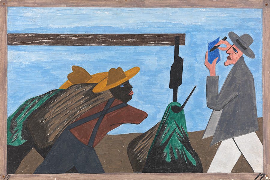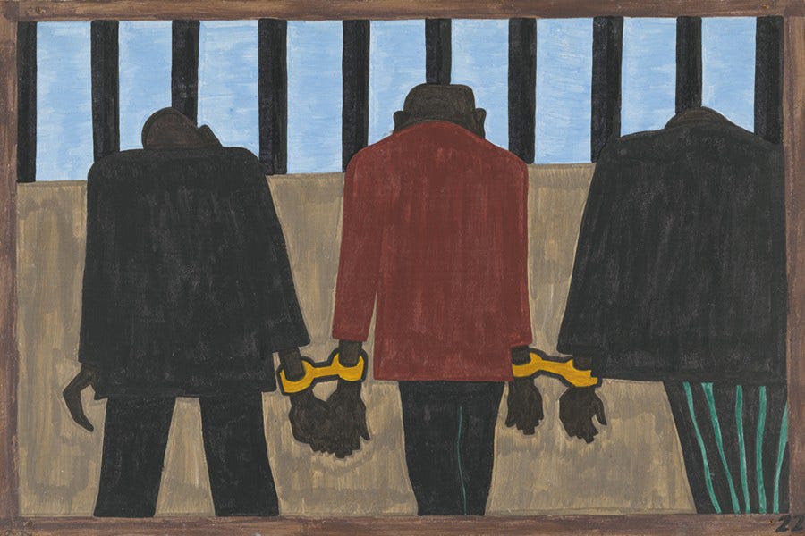 Lawrence's unique visual language shines a light on understudied chapters in American history, chronicling the Black experience that’s both humanistic and epic. Like a West African griot, he shares stories that connect the past to the present and future, inviting reflection on universal themes of struggle and migration. It’s an issue still worth engaging today.